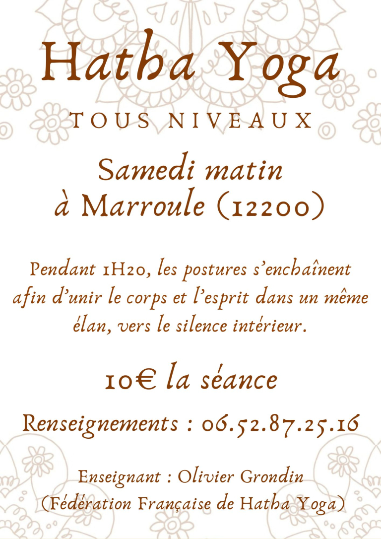 M Olivier Grondin enseignant en Hata Yoga propose des séances de 1h20 les samedis en matinée dans la salle de Marroule. Divers services sur la commune https://www.martiel.fr/vie-locale/services/