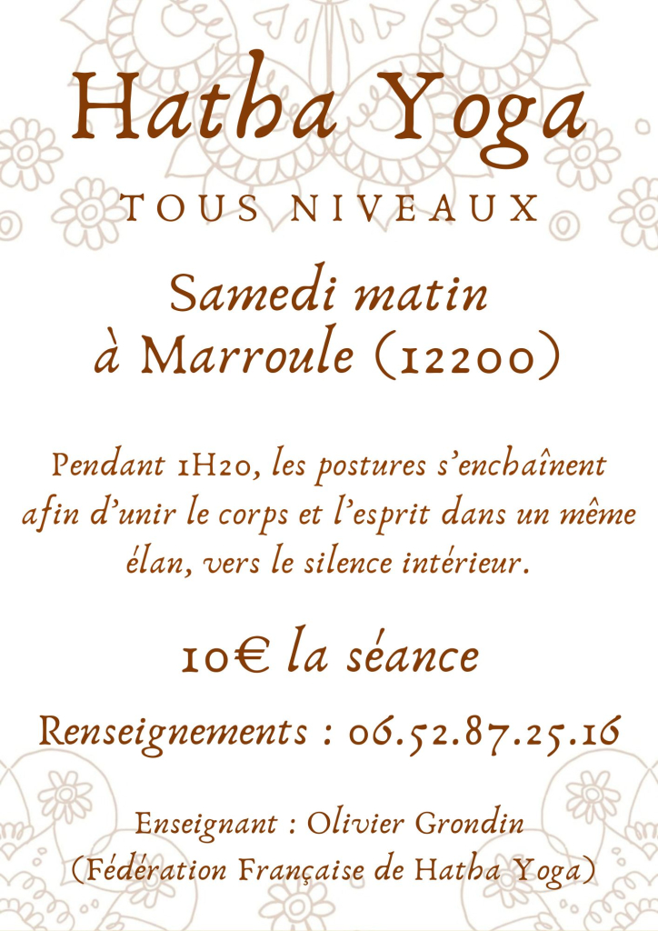 M Olivier Grondin enseignant en Hata Yoga propose des séances de 1h20 les samedis en matinée dans la salle de Marroule.