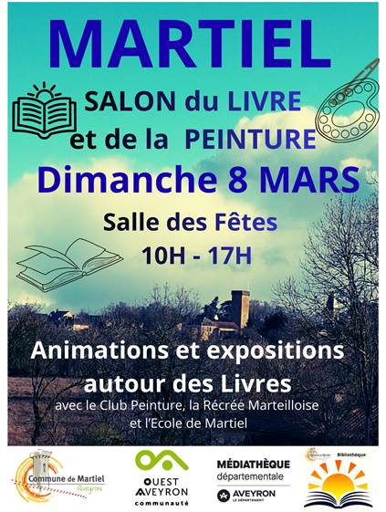 15ème Salon du Livre et de la peinture MARTIEL 2026 / Dimanche 8 MARS de 10 à 17 heures